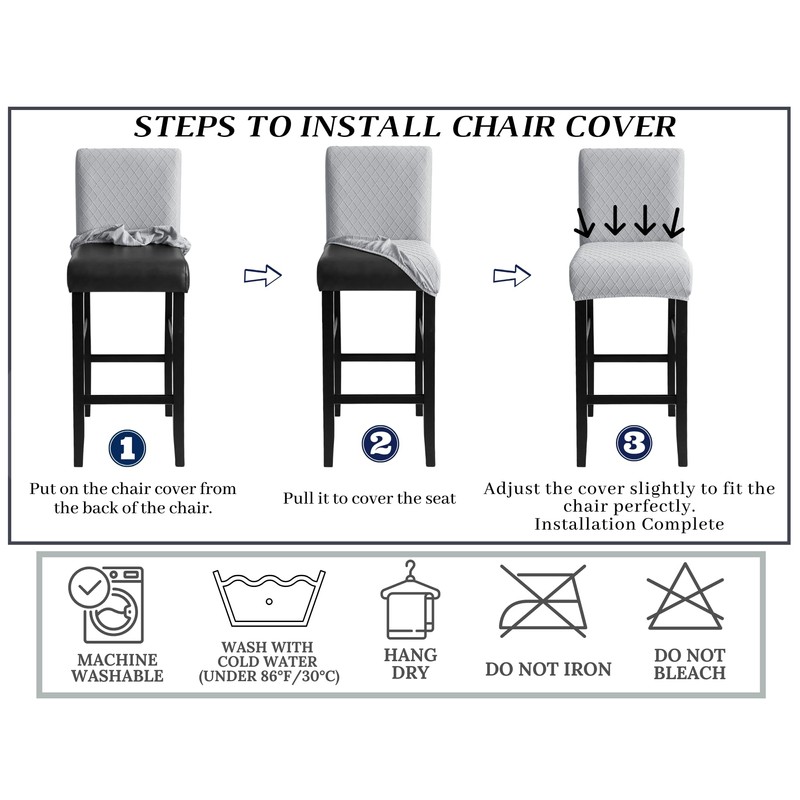 - Quick Installation & Easy Care: These stretchable barstool seat covers are machine washable for hassle-free cleaning. Simply slip on the cover and secure in under a minute. Wash separately in cold water, gentle cycle; tumble dry low.