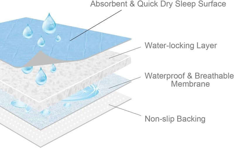 - High-quality Material & Four-Layer Protection: The mat is made of premium polyester fabric. This mat is designed with 4 absorbent and protective layers to lock in moisture protecting sheets, bed and sensitive skin from wetness, and protect furniture from fluid damage and soiling. A smooth surface and a soft side feel great on the skin.