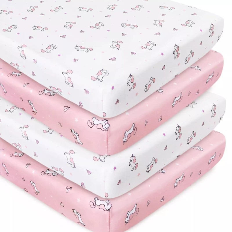 - High Quality: These crib sheets are made of ultra soft polyester, woven into a soft and durable fabric. Your baby will be enjoying the soft, smooth and comfortable feeling when sleeps or plays. Also our crib sheets are washable and pre-shrinked.