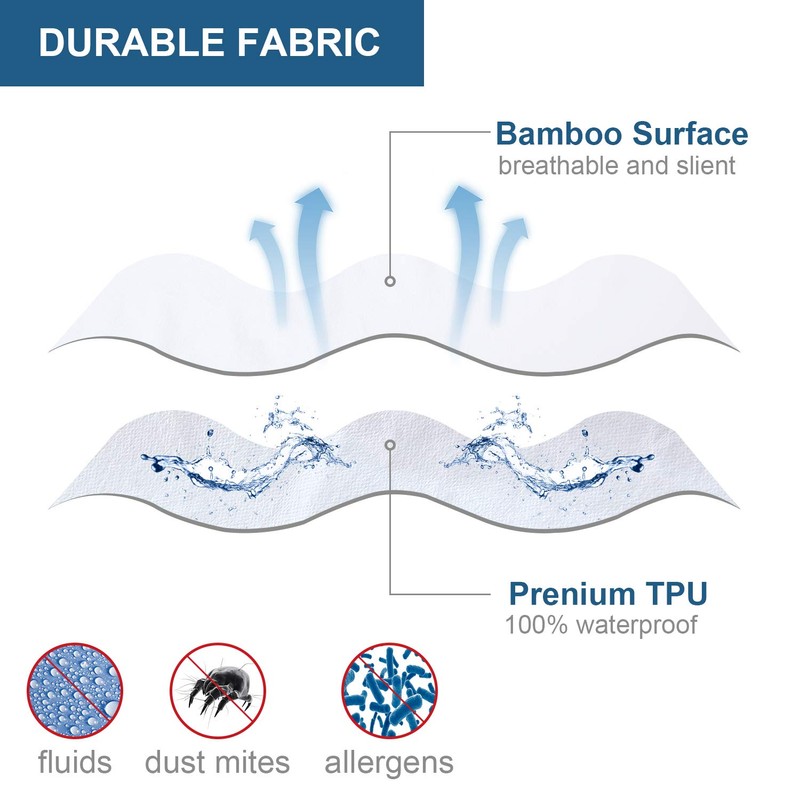 - 100% Absorbent & Waterproof Mattress Protector: Springspirit mattress protectors with waterproof 100% premium TPU layer, It will be your best protection to avoid nighttime accidents, liquids or stains. Mattress Protectors are super soft quilt with bamboo to promptly absorb any liquids.