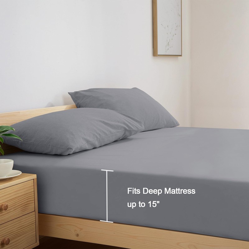 - 4 Piece Twin XL Sheet Set Includes: 1 fitted sheet (39" X 80"), 1 Flat Sheet (66" x 102") and 2 Pillowcases (20" x 40"), Extra deep pockets grip and fit mattresses up to 15". 2 pillowcases give you convenience, while one is washed, the other comes in hand.