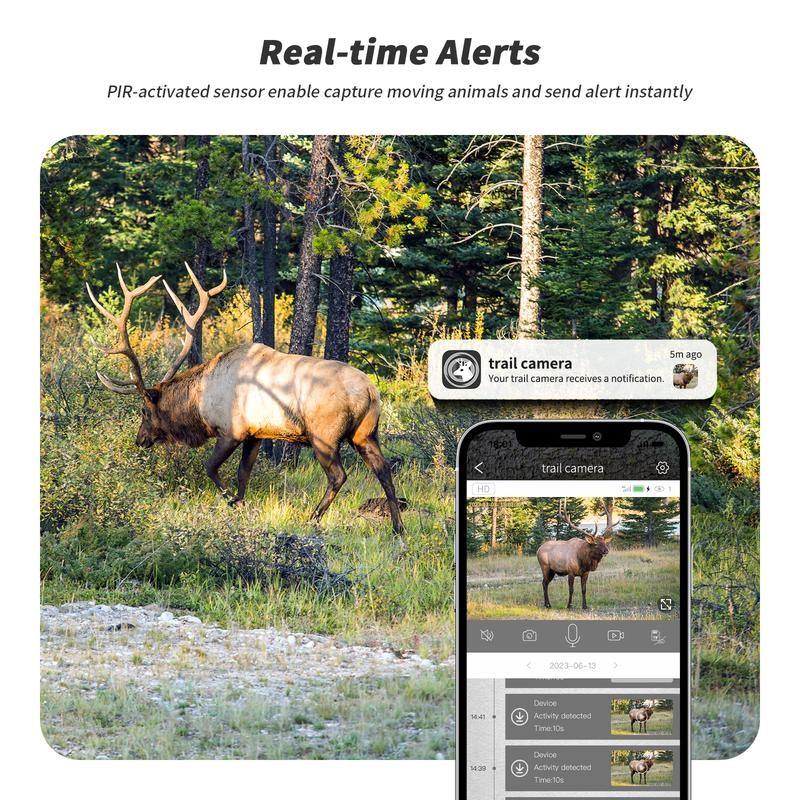 Cellular trail camera boasts an adjustable PIR sensor and a lightning-fast trigger speed of 0.2 seconds, ensuring accurate detection and swift capture of the essence in both photos and videos. Timely alerts are provided through the Ucon app.
