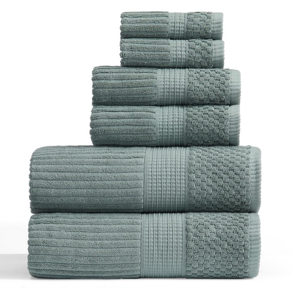 Springtree Home 100% Cotton Bath Towel Set | 6 Piece Set | Absorbent & Quick-Dry Bath Towels | Textured and Durable Cotton | Krista Collection - Silver Blue
