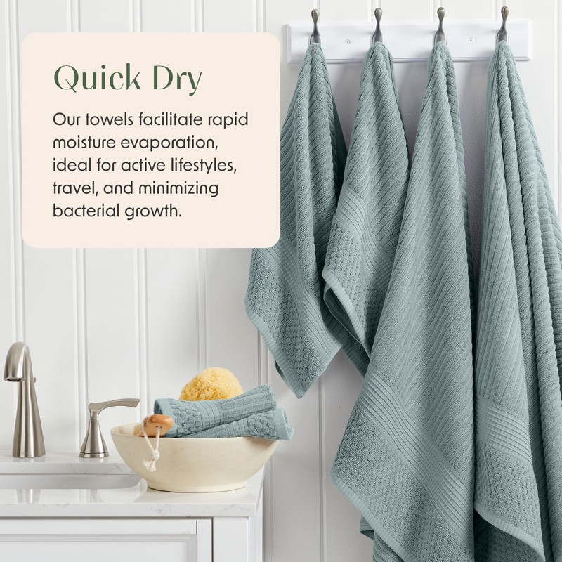 - QUICK DRY & ABSORBENT : Made of 100% High Quality Cotton for Ultimate Comfort and Durability. Our towels are 600 GSM with provides extra absorbency and the textured fabric dries quickly and completely.