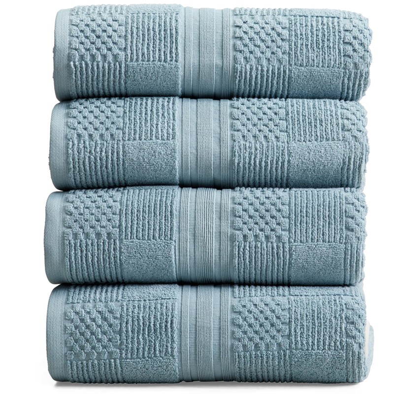 Springtree Home 100% Cotton Bath Towel Set of 4 | Geometric Textured Design | Super Soft & Absorbent with Quick-Dry Fibers | 4 Bath Towels | Oeko-TEX® Standard 100 Cotton | Myla Collection