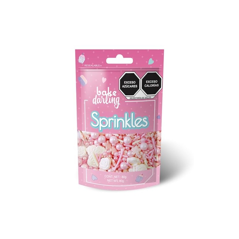Sprinkles Mix Perlas Y Flores Rosas 80 Gr. BAKE DARLING