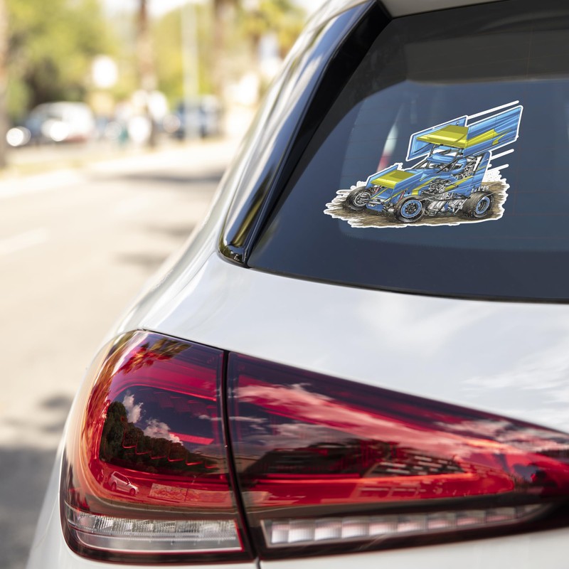 - Energetic Sprint Car Design: Features a vivid representation of a sprint car in action, evoking the excitement of dirt race tracks.