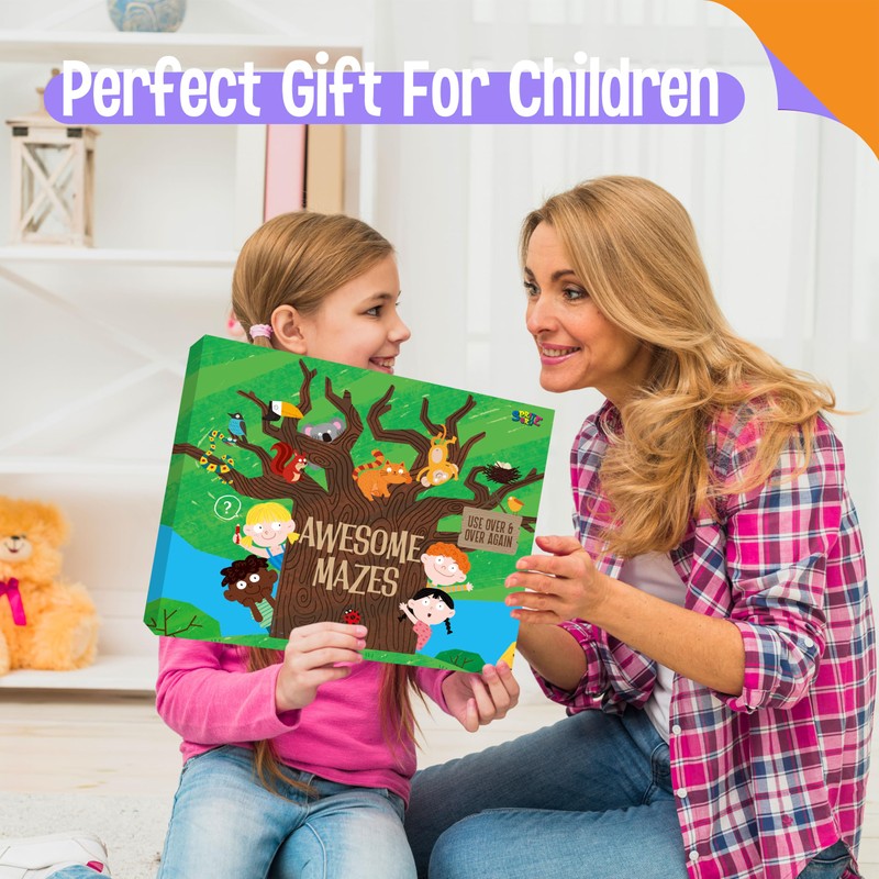 Enjoyable and Educational: Mazes are not just fun, they're also a great way to exercise kids’ brain! Solving mazes improves problem-solving skills, spatial reasoning, and concentration. This dry-erase book provides a fun and engaging way to challenge oneself and sharpen his cognitive abilities. Perfect for road trips, airplane travel, or quiet time at home, it’s an engaging way to make learning exciting!