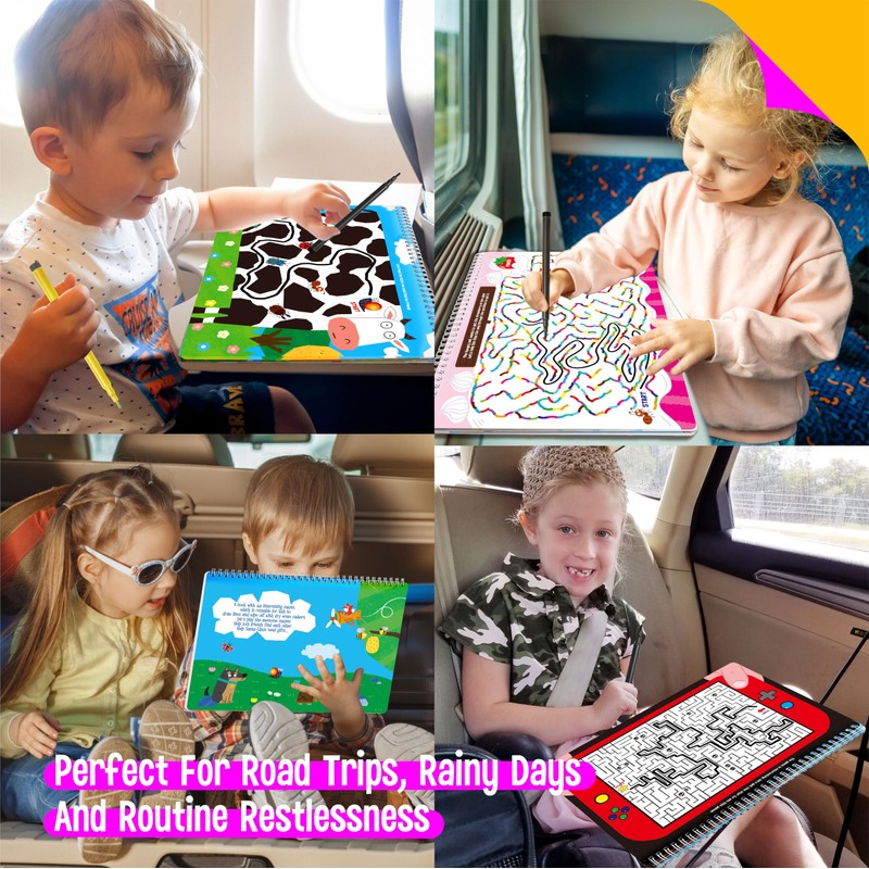 Large Size: The pad measures 8.3” x 11”, the pages are large enough for kids to easily play the mazes without feeling cramped. The size is perfect for little hands, offering plenty of space for drawing and erasing. It is also portable, pack it in your bag and take it out to kids while you are having a road trips or at airplane. Kids can enjoy hours of playing games during the trips.