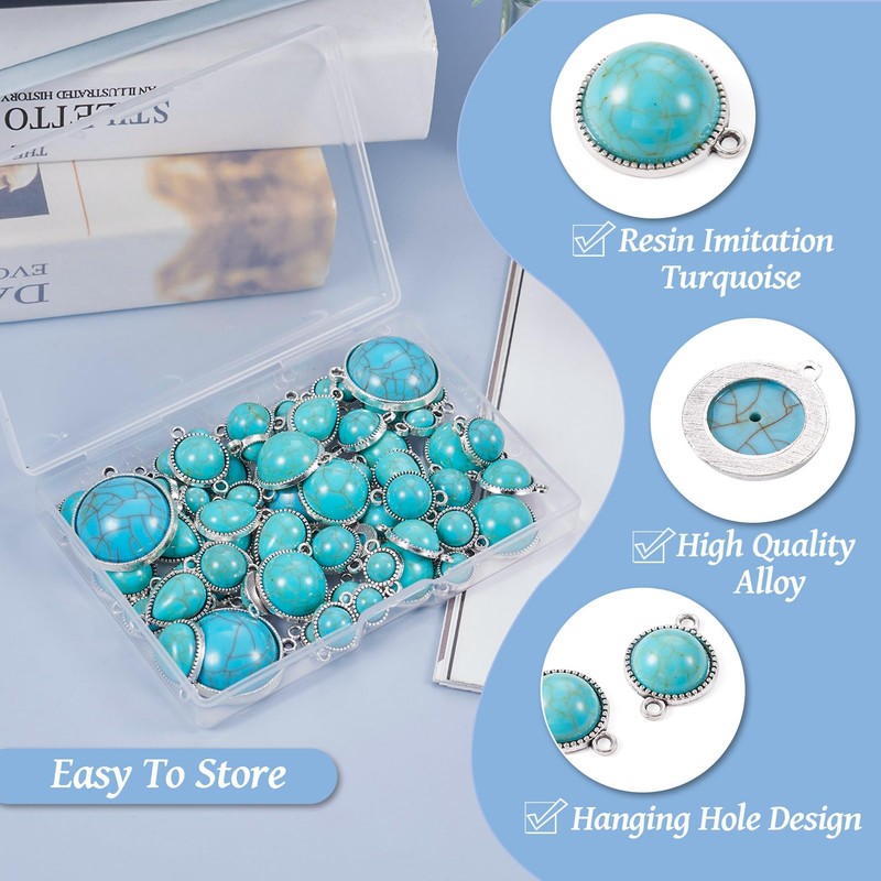 - 💖PACKAGING: 70 pieces of turquoise charm, including 18 pendants and 52 connector charms, 15.5-28x8-25x4.5-9mm, holes: 1.5-1.8m