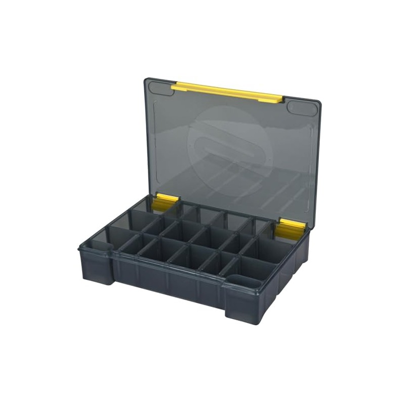 - ✔️ Compartments: Different distances between dividers offer the angler maximum flexibility of hardbaits, softbaits or terminal tackle. In addition, small compartments for micro small parts such as snaps, swivels etc. are integrated on the sides.