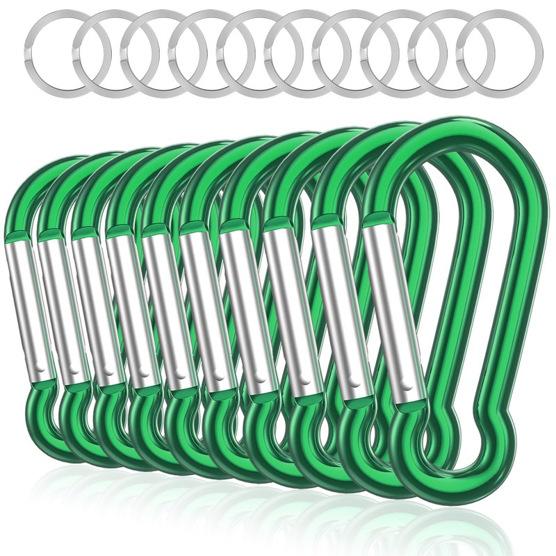- ✔【Product Include】- 3" Carabiner Clip(10 Pcs) and 30mm Steel Rings(10 Pcs). These Gourd Shape Aluminum Snap Hooks are perfect for Backpack, Key Ring, Chains, Ropes, Water Bottle, Dog walking, Camping, Hiking, Fishing, Pet, Indoor/Outdoor Equipment Gear
