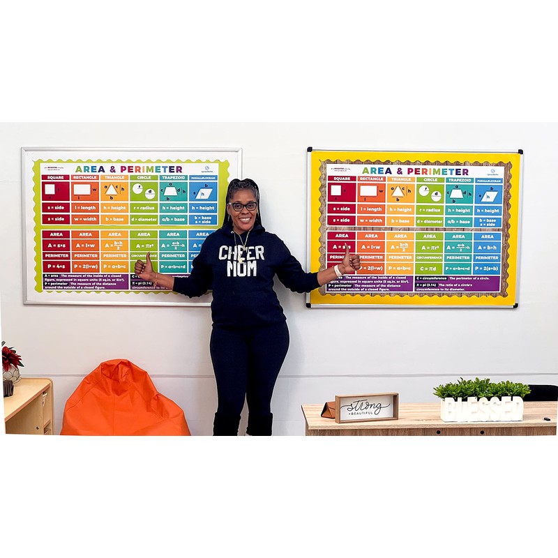 Sproutbrite Educational Math Posters Area Perimeter Geometry Mathematics Classroom Banner Decorations for Teachers - Banners Bulletin Board and Wall Decor for Elementary and Middle School