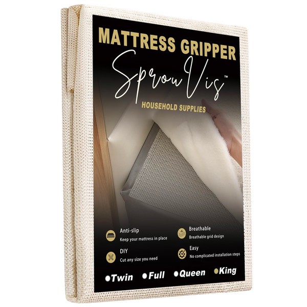 SprouVis Mattress Slide Stopper and Gripper,Keep Bed and Topper Pad from Sliding for mattresses, Carpets, Sofas, Chair Cushions, Easy Trim, Slip Resistant, Grips Helps Stop Slipping(King)
