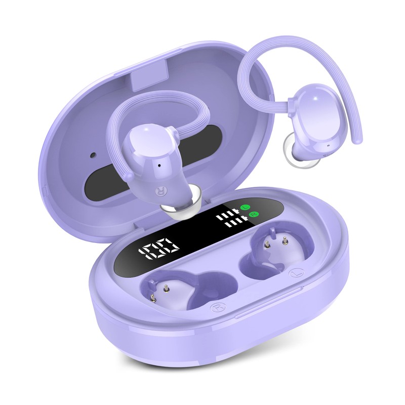 sprtoybat Wireless Earbuds, 2023 New Ultralight Sport Bluetooth 5.3 Headphones In Ear with LED Display, Built-in Mic Earphones, IPX7 Waterproof Wireless Headphones with Earhooks for Gym Workout (Purple)
