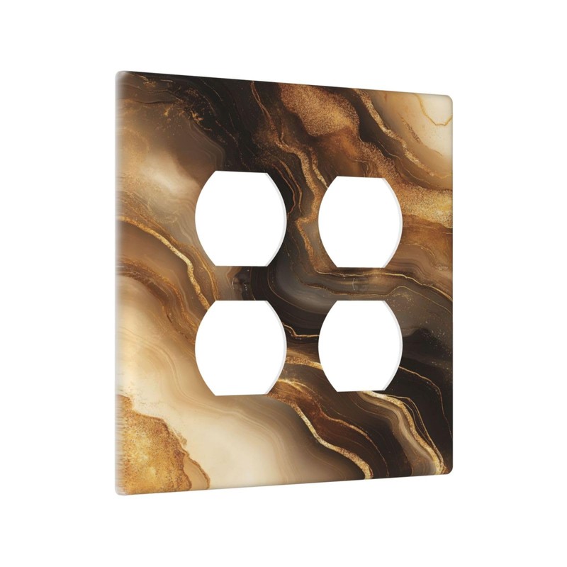 Spshian Decorative Outlet Covers Abstract Gold Black Marble Texture 2 Gang Wall Plate Cover Double Duplex Receptacle Two Switch Light Switch Cover Plate Jumbo Dual Face Plate