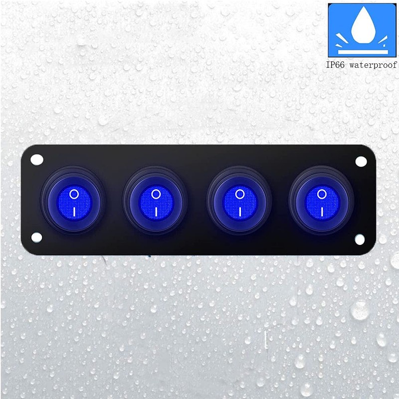 SPST ON/Off Boat or Marine Rocker Switch Panel with Blue Light Toggle Rocker Switch Panel LED Breaker 4 Gang 12V 20 Amp Switch Panel LED Breaker with IP66 Waterproof