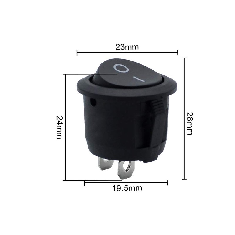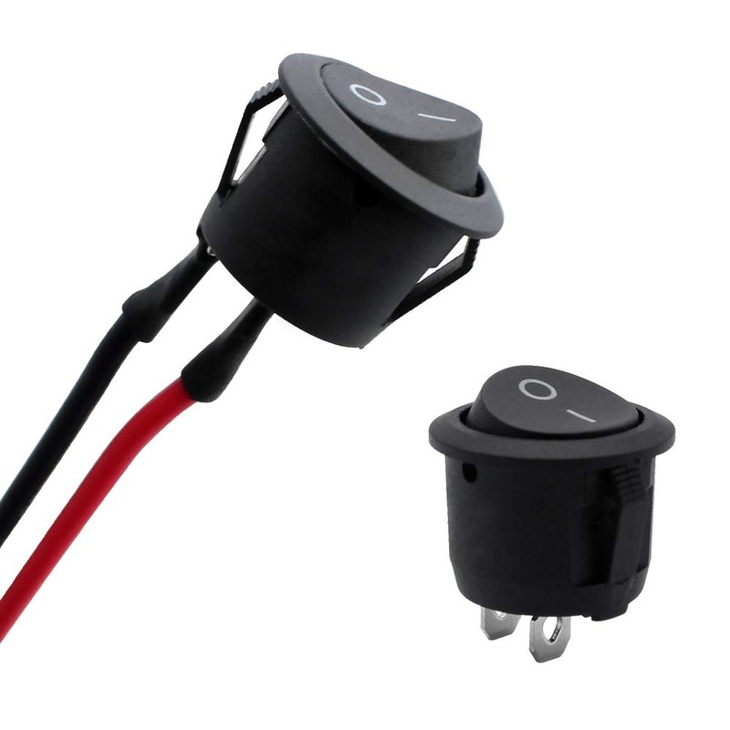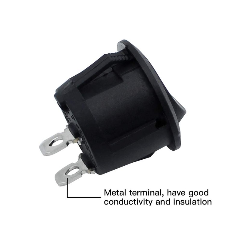 - Round 2 pin switch: 10 round rocker switches, 2-pin, ON/OFF, rating current voltage: 10A 125V AC /6A 250V AC.