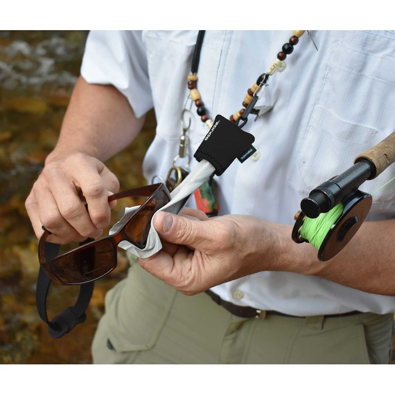 - TAKE IT ANYWHERE: The travel pouch comes with a plastic clip that can be attached anywhere. Attach it to your backpack at school, your jacket while hunting, or a keychain for everyday use. This microfiber cloth is always in easy reach.