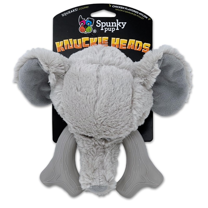 Spunky pup Knucklehead Durable Dog Toy - 2-in-1 Plush & Chew Toy for Aggressive Chewers, Chicken-Flavored Dental Chew, Durable Double-Stitched Squeaker- Elephant