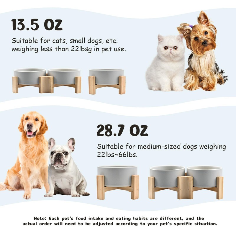 - CERAMIC MATERIAL: SPUNKYJUNKY Tilted Dog Bowl Set uses high temperature fired safe ceramics with a heightened wooden stand to provide a healthy feeding environment for your pet