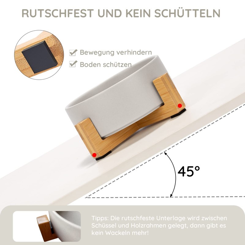 - Natural wood stand: The unique wooden stand can effectively prevent food spills and keep the floor clean and tidy. The non-slip bowl base makes it easier to pick up and put down.
