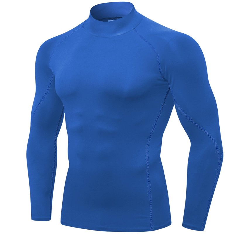 SPVISE Blue Compression Shirts Men Cooling Athletic Workout Running T-Shirts Performance Baselayer Undershirt Long Sleeve