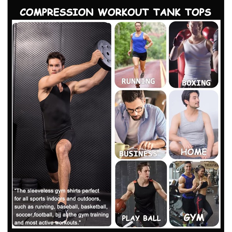 - Versatile sleeveless compression shirt men works well for whatever activity you seek.