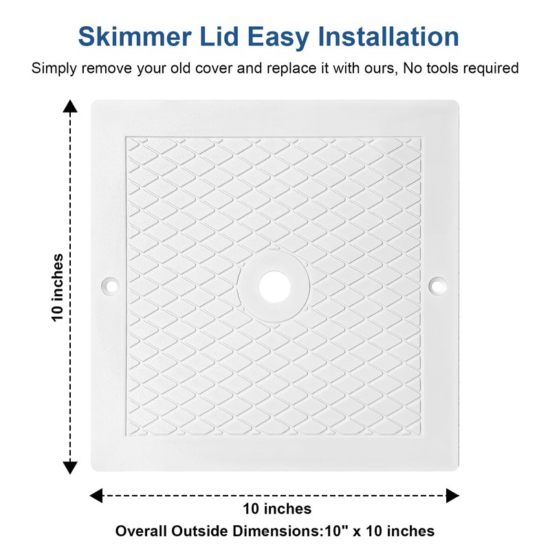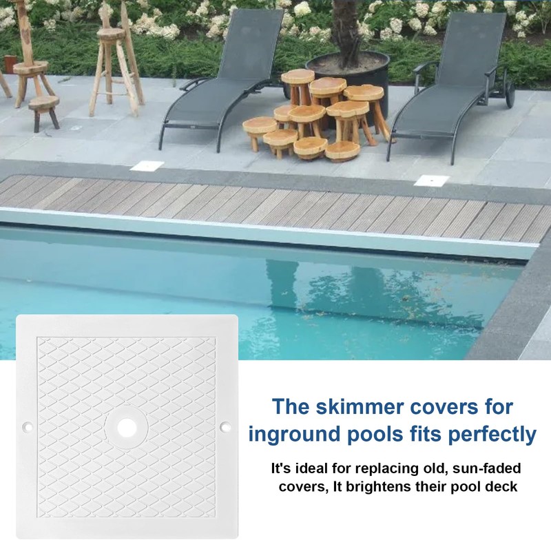 - Compatible with Inground Pools: Specifically engineered for inground /Above Ground pools, this skimmer cover securely fits standard 10-inch square skimmer openings, it effectively blocks debris from entering the pool skimmer and prevents accidental damage to the skimmer basket while maintaining a sleek, low-profile look, it makes the pool area look newer, perfect replacement for old sun faded lids