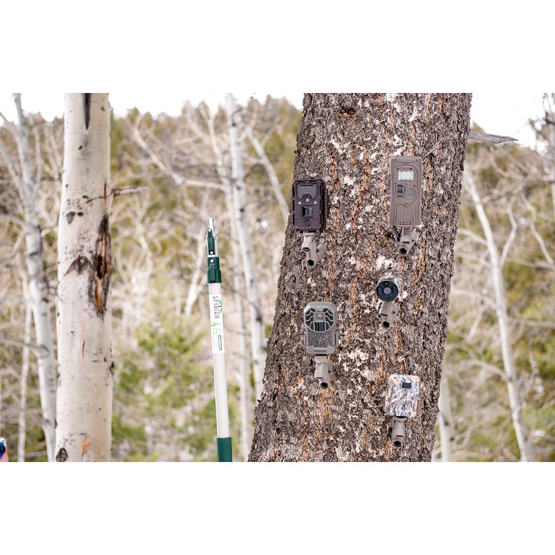 Each pole extends from 2 to 4 feet in length, easily adjusting in 6-inch increments and locking securely in place. A special bayonet grip tip connects the poles together without twisting or loosening, enabling the user to mount trail cameras up to 16 feet off of the ground. Plus, no ladders or climbing is required!