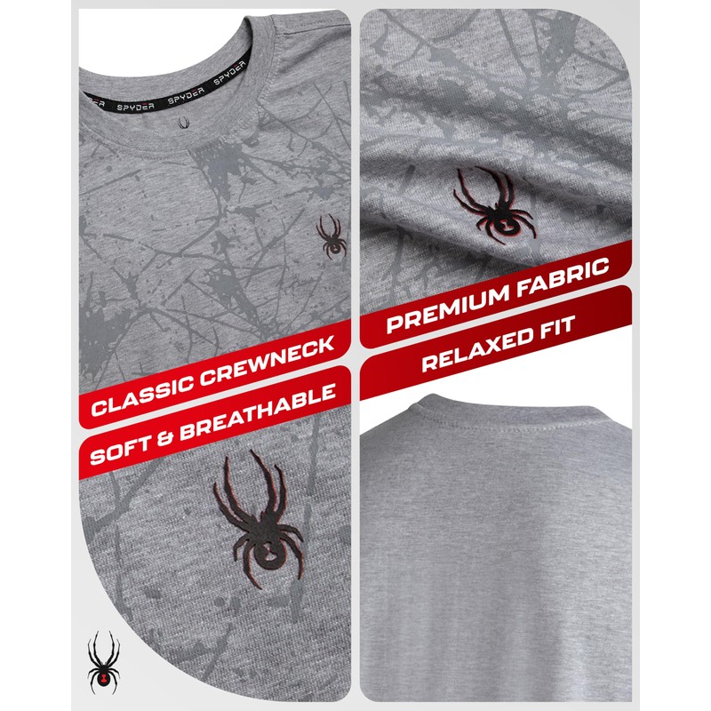 Spyder Mens T-Shirts - Soft Cotton Blend Jersey Crewneck Short Sleeve Shirts for Men, Casual Shirts for Workout & Daily Wear, Size Large, Heather Grey Web