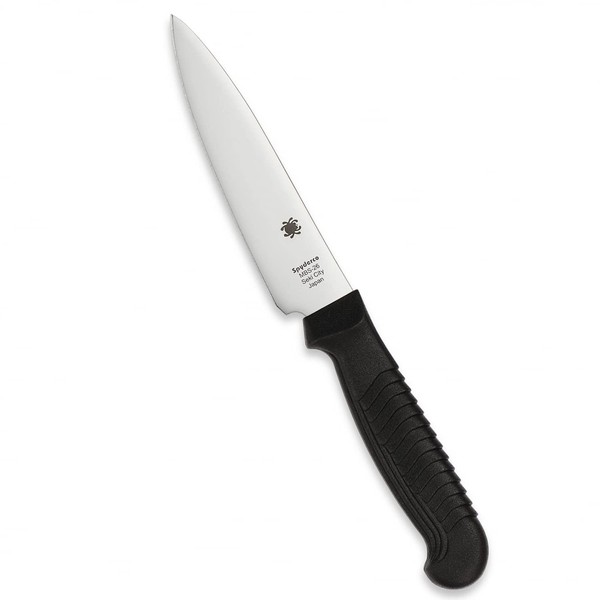 Spyderco Lightweight Kitchen Utility Knife with 4.5" MBS-26 Stainless Steel Blade and Black Polypropylene Plastic Handle - PlainEdge - K05PBK