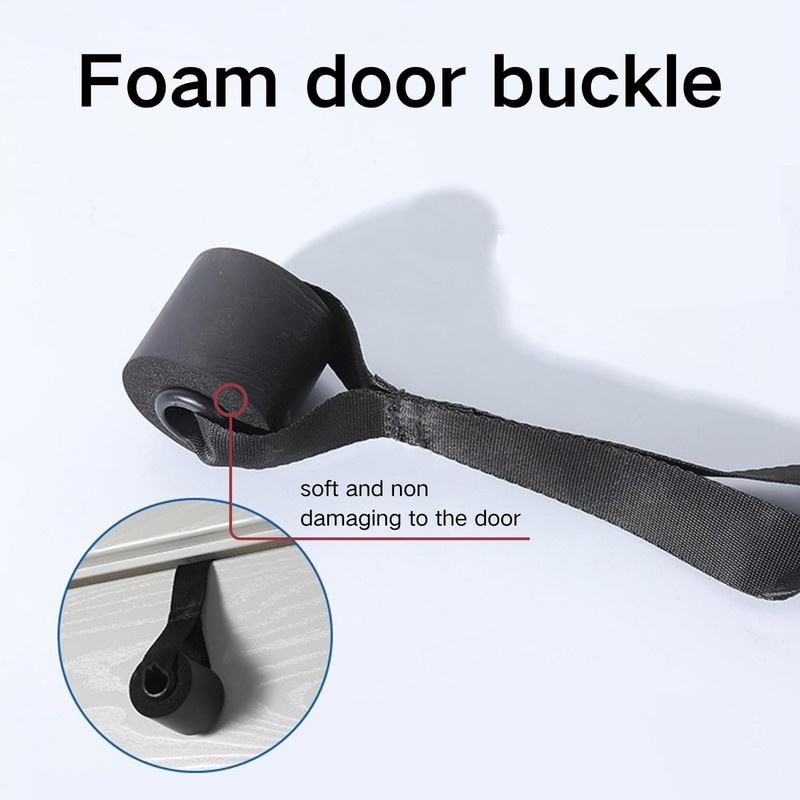 Simply pass the foam padded strap through the top of the door, close the door and ensure a firm and secure fit.