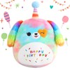 SQEQE Happy Birthday Stuffed Animal 10" Rainbow Dog Soft Toys Cute Plush Pillow Unicorn Dog Plush Toy for Kid Girl Boy 25CM