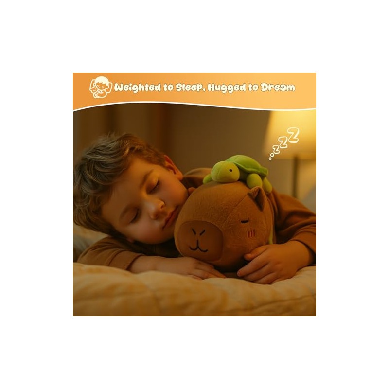 - [Weighted Comfort] This huggable capybara plush is filled with gentle weighted beads that provide comforting pressure when placed on your lap, chest, or tummy. The soft, even weight helps create a soothing sensation, like receiving a warm hug whenever you need some relaxation. Perfect for curling up on the couch, resting during travel, or simply enjoying quiet time, this weighted companion offers comforting support throughout your day.