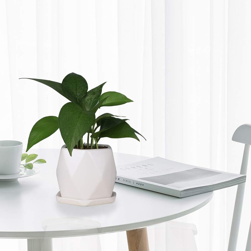 - DRAINAGE HOLE and REMOVABLE SAUCER-The bottom drain hole provides a good environment for your plants to prevent the soil from becoming too wet.The ceramic removable saucer grabs excess water from the pot and keeps the table clean.