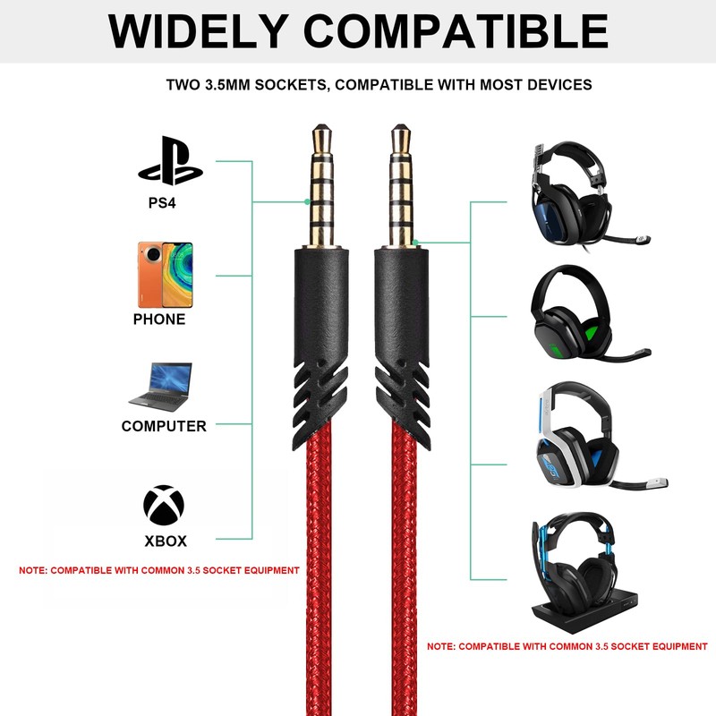 - 3.5 mm Gold-Plated Jack: 3.5mm gold-plated audio jack provide excellent voice clarity. 5-Pole jack connect to your A40 A40TR headset. Another jack compatible with PS4/PS5/Xbox One/Xbox Series/PC/Switch, Mobile, and other platforms with a 3.5mm port.