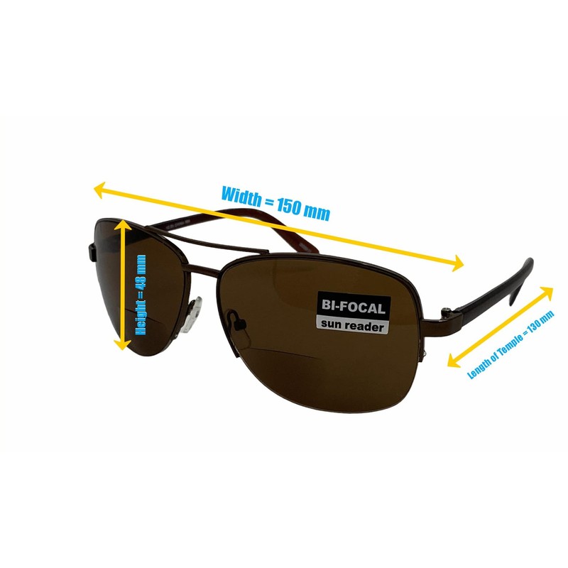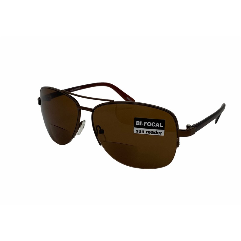 square aviator BIFOCAL READING SUNGLASSES brown frame brown lens 100% MAX UV400 powers +1.50 +2.00 +2.50 (Brown Frame, 2, diopters)