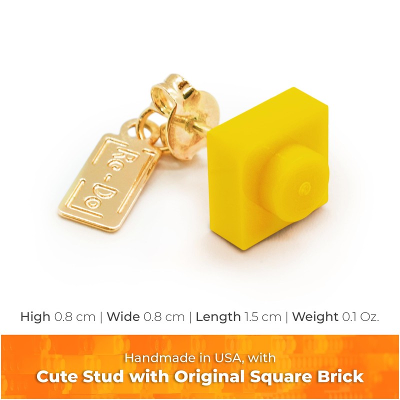 Square Brick Stud Earrings with Gold-platted Body. Lightweight, Hypoallergenic, Great for daily outfits, Original design by Re-Do Bricks. Aesthetic. Unique. Trendy. (Yellow)