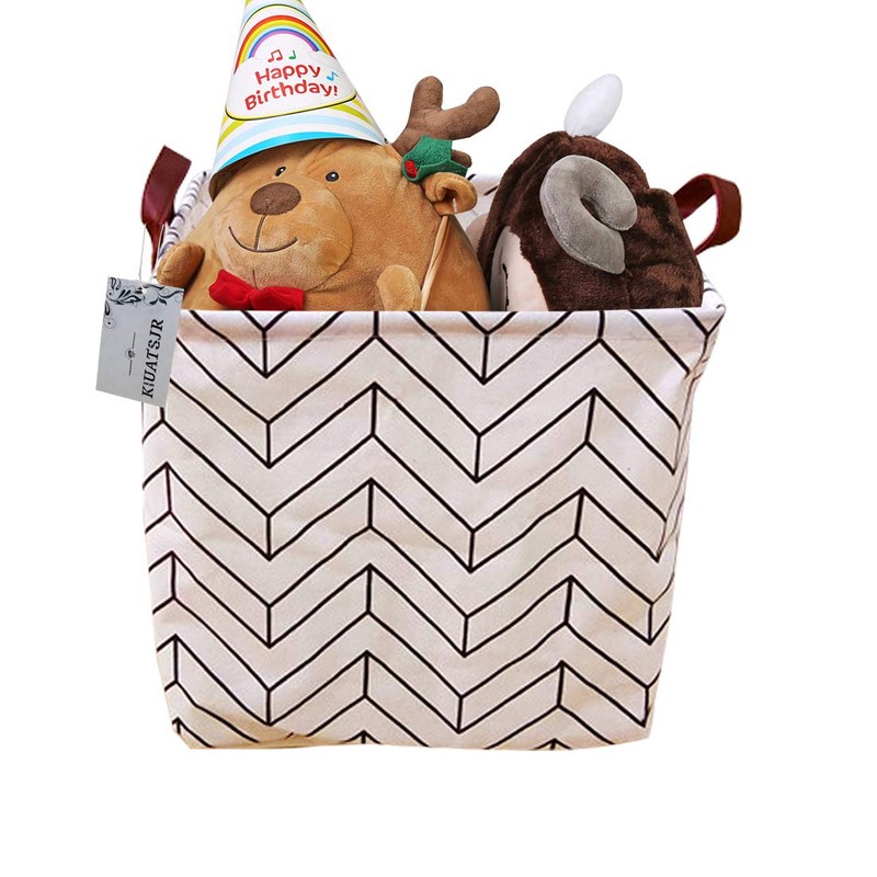 Square Canvas Toy Storage Bins Basket with Handle Collapsible Toy Organizer for Nursery Storage, Kid's Toy & Laundry, Gift Baskets(White-Geometric)
