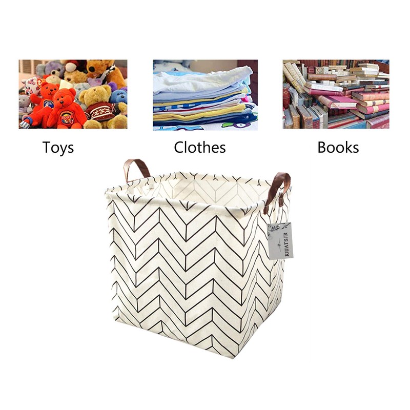 - Stylish Design: This pattern as shown in the picture, it is thin stripe. Wire-framed for stability, this storage bin box has a metal ring to maintain the shape at the top. With the handle on both side, moving conveniently