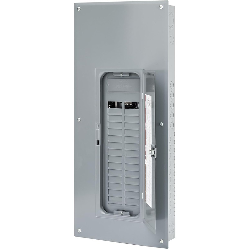 - Includes a combination flush/surface indoor cover and is convertible to main breaker load center with a QOM2 main breaker (sold separately)