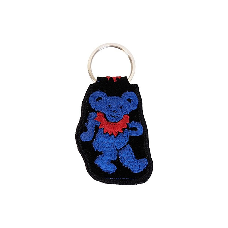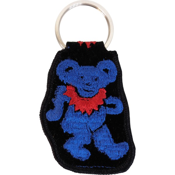 Square Deal Recordings & Supplies Embroidered Fabric Keychain - Blue Dancing Bear with Red Necklace - Durable Keychain for Bags, Purses, and Accessories