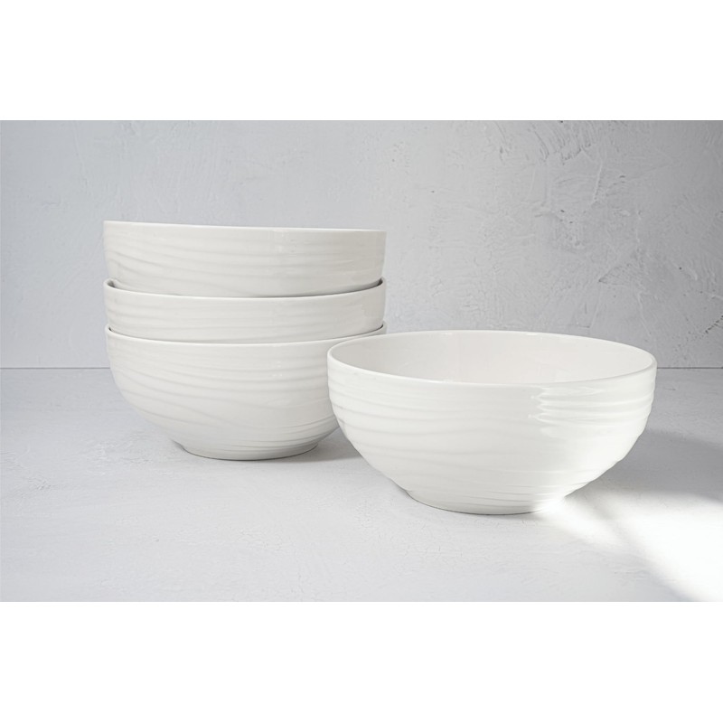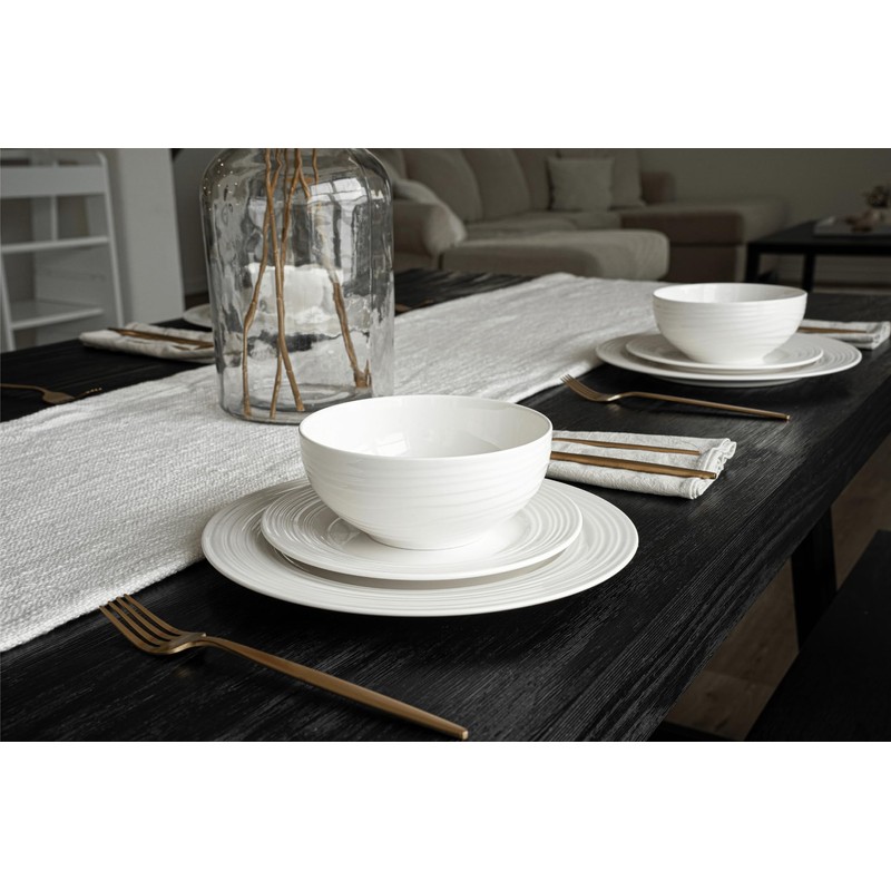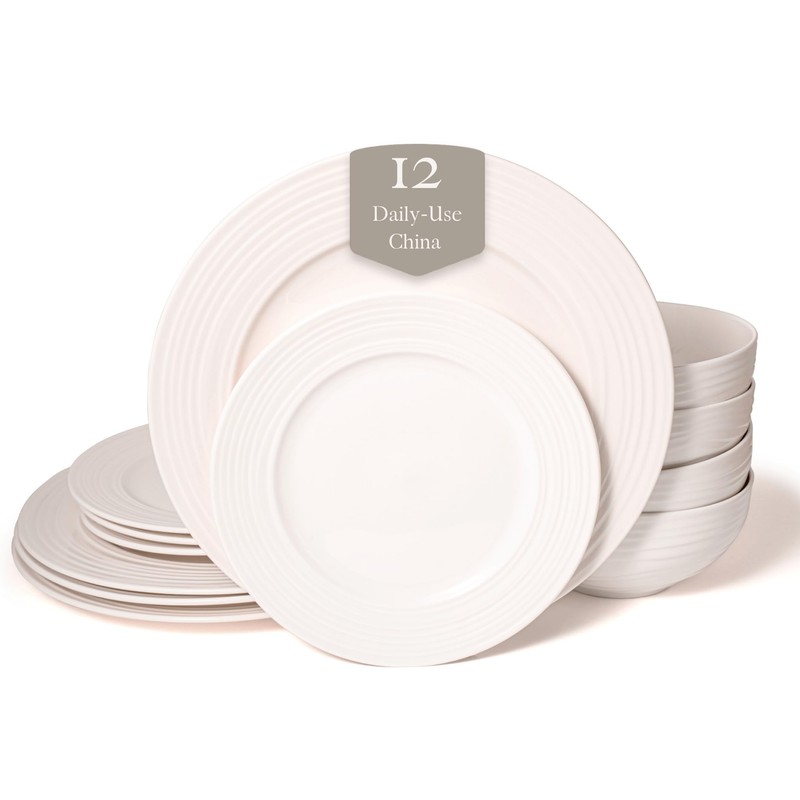 Square House New Bone China 12 Piece Dinnerware Set, Santorini Collection (Wave), White, Daily Use China, Embossed Tableware Service for 4