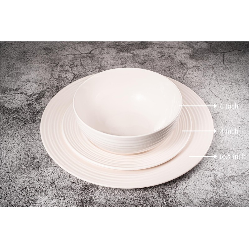 - ✔️ Service for 4 - This 12-piece set includes all the essentials to serve a party of four: 4 Dinner Plates (10.5 inches), perfect for main courses and hearty meals. 4 Salad Plates (8 inches), ideal for appetizers, desserts, or side dishes. 4 Bowls (6 inches), designed for soups, salads, cereals, and more.