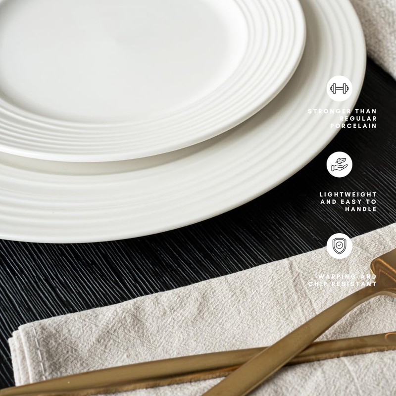 - ✔️ Minimalist Design - The set features a classic white design with a sleek, minimalist appeal. Its neutral tone complements any table setting, allowing you to mix and match with your existing tableware or enhance it with colorful linens and décor. The timeless aesthetic transitions effortlessly from everyday use to more formal occasions.