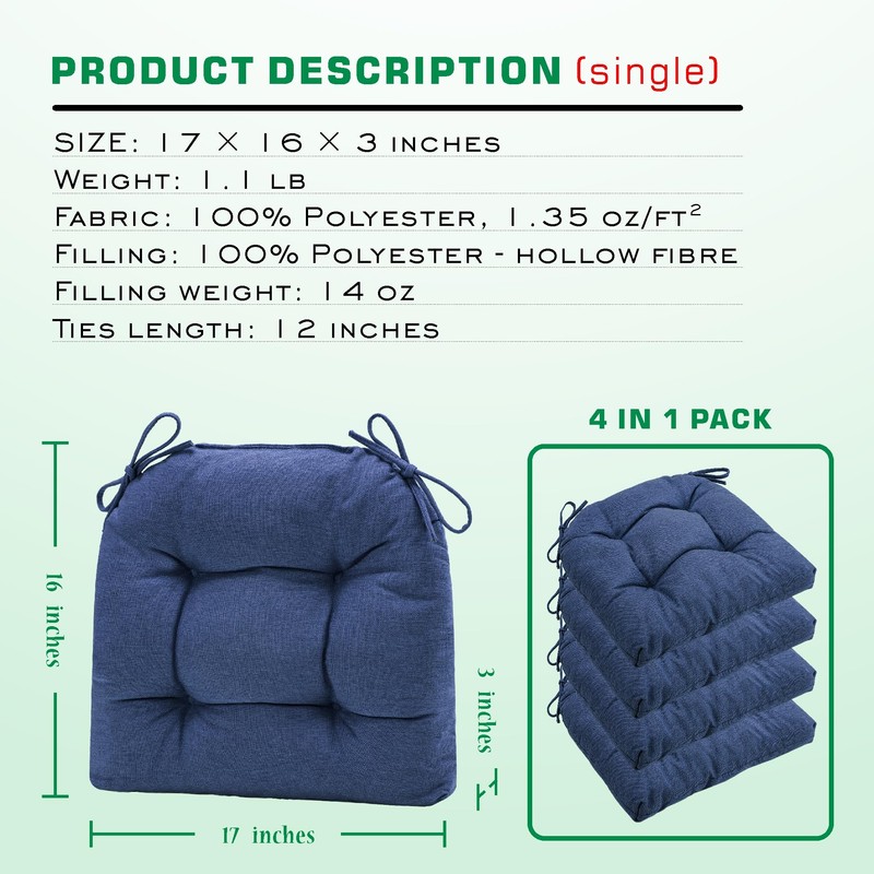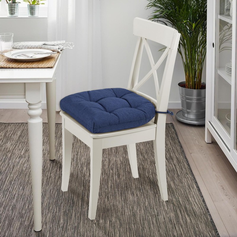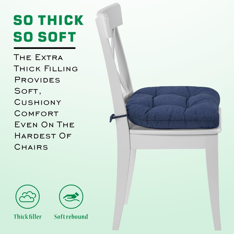 SQUARE MOON Chair Cushions for Dining Chairs, 3 Inch Thick Comfortable Kitchen Chair Pads, Dining Room Seat Cushions with Ties, Machine Washable, 17" x 16" x 3", Set of 4, Navy