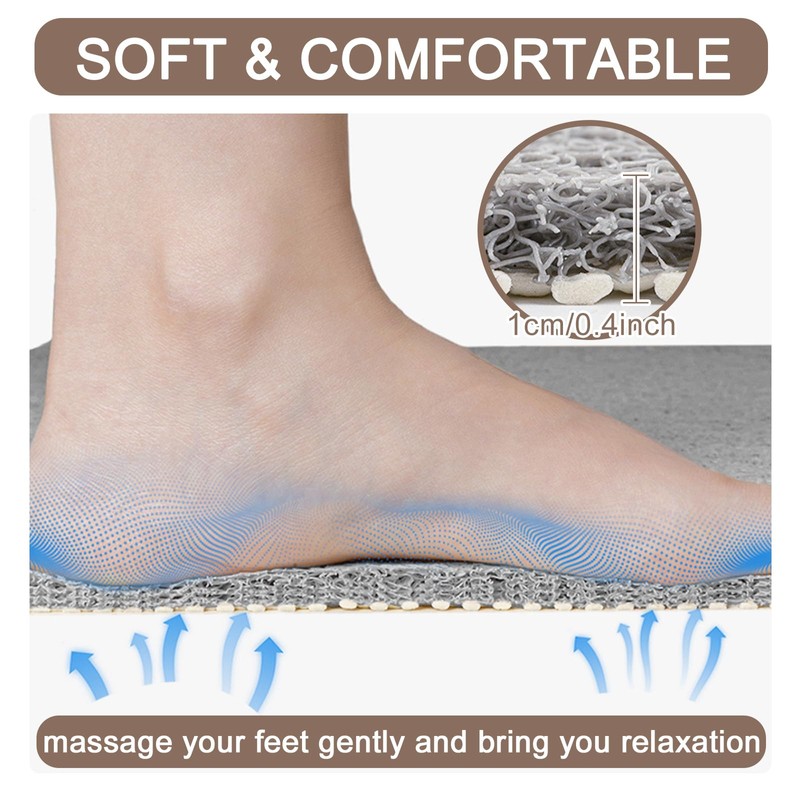 - ENJOY YOUR COMFORTABLE SHOWER The hollow shower mat is not only non-slip, but also provides comfortable support. Unlike the hard and cold ordinary shower liners, the soft, loofah-like textured surface provides a comfortable massage experience for your feet while showering.