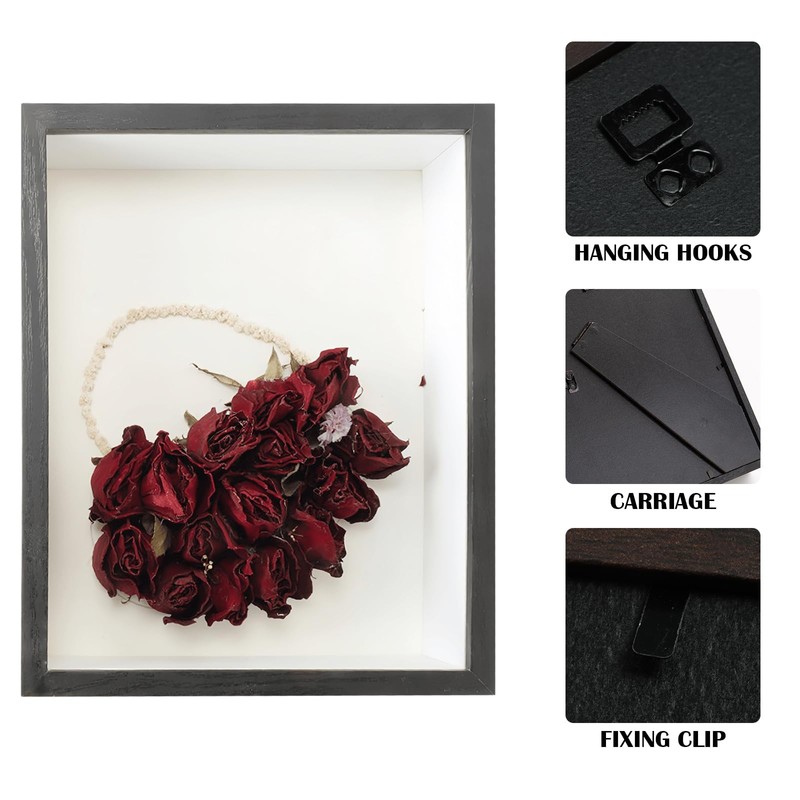 • 【Memory Box】:The 3D Deep Shadow Box Frame could be used to protect and share your most precious moments and memorabilia. You can arrange a personalized collage with photos, cards, pet memorabilia, concert tickets, medals, bouquets, drying flowers with the shadow boxes.