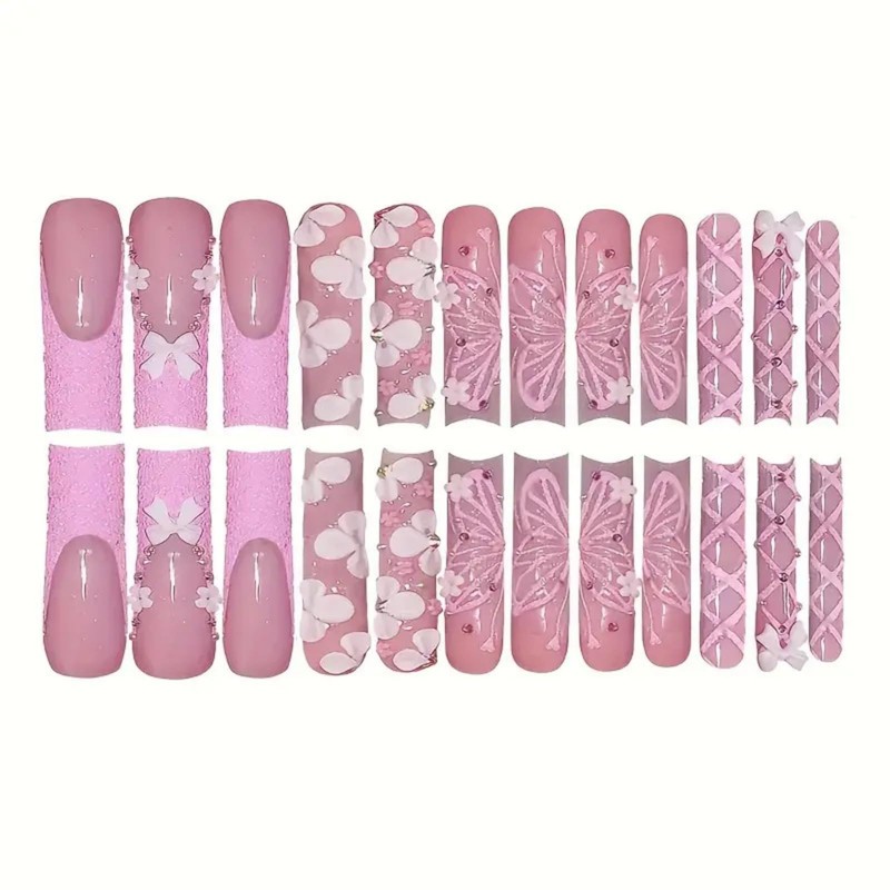 Square Press on Nails Long Pink Fake Nails Press ons False Nails Acrylic Nails Press on Artificial Nails Cute Nails with Bow Designs For Women 24pcs